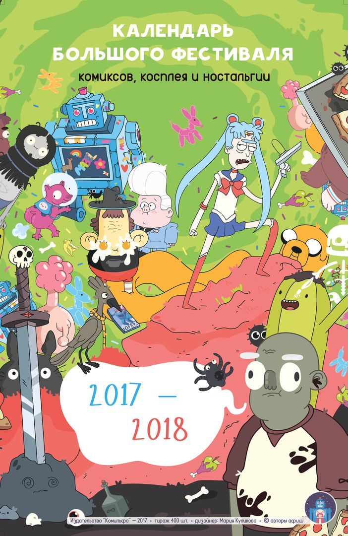 Перед вами календарь Большого Фестиваля комиксов, косплея и ностальгии. В нём собраны работы 20 художников, приуроченных к этому событию. Но это ещё и календарь! Поэтому он будет радовать вас на протяжении 18 месяцев! Помимо стандартных скучных дат, мы добавили целую массу гик-праздников и событий на любой вкус.