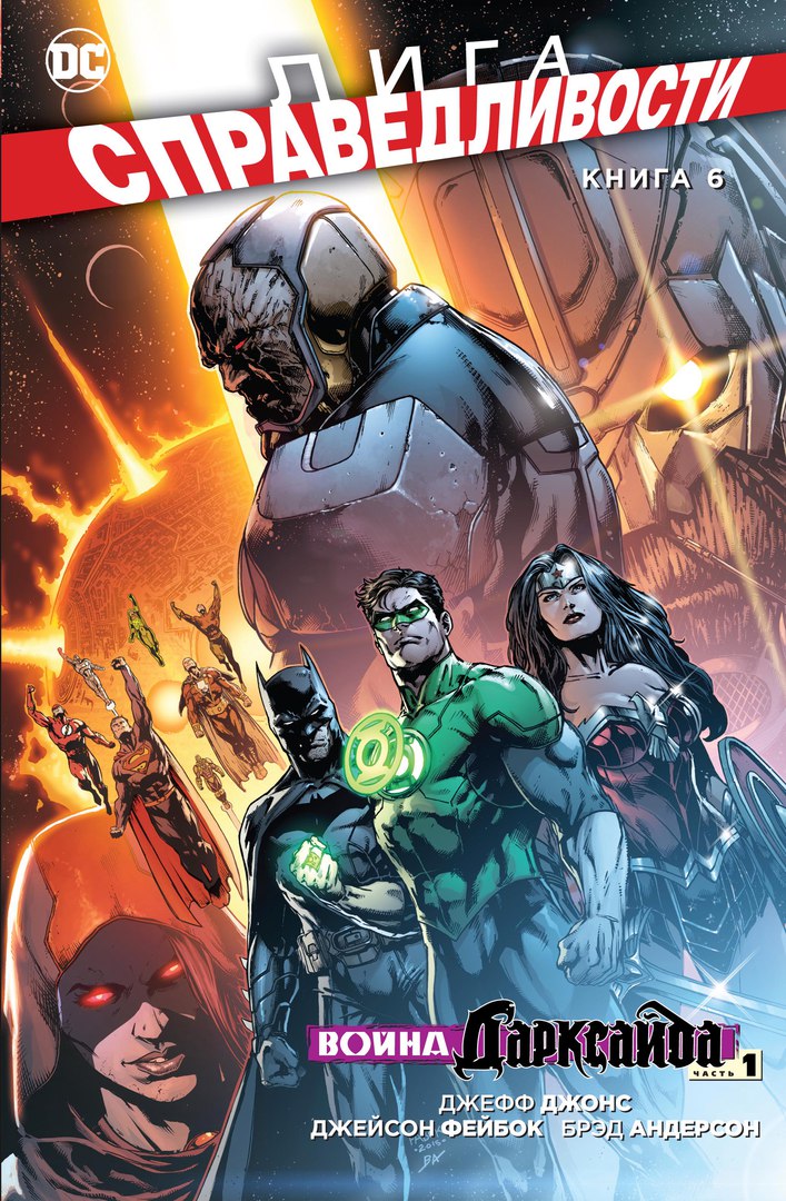 В графический роман «Лига Справедливости. Книга 6. Война Дарксайда. Часть 1» включены выпуски № 40-44 и превью DC к первому выпуску «Лиги Справедливости». Что ещё важно знать? Джефф Джонс («Вечное зло») и Джейсон Фейбок (DETECTIVE COMICS) — настоящие суперзвёзды DC, так что будет круто!