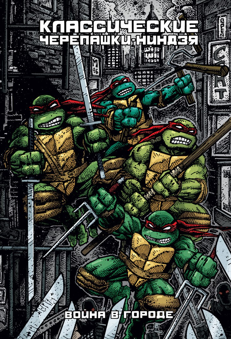 Легендарный сюжет «Война в Городе» из 13 выпусков, созданный Кевином Истменом, Питером Лердом и Джимом Лоусоном и завершающий первый том классических чёрно-белых комиксов о Черепашках, впервые в мире за всю историю существования зелёной четвёрки издаётся под одной обложкой!